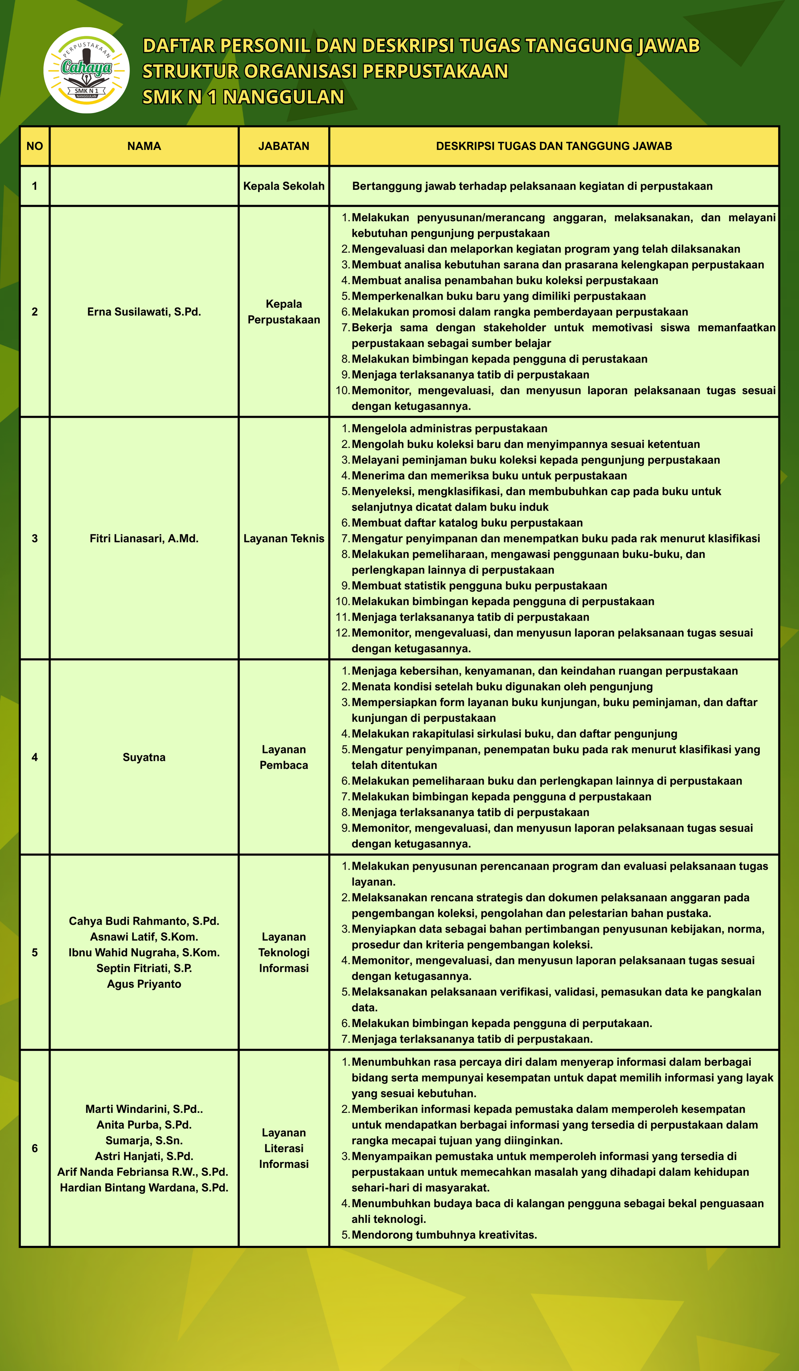 Hal ini sesuai dengan Visi perpustakaan cahaya SMKN  1 NANGGULAN, yakni mewujudkan perpustakaan sekolah sebagai sumber ilmu yg menginspirasi.