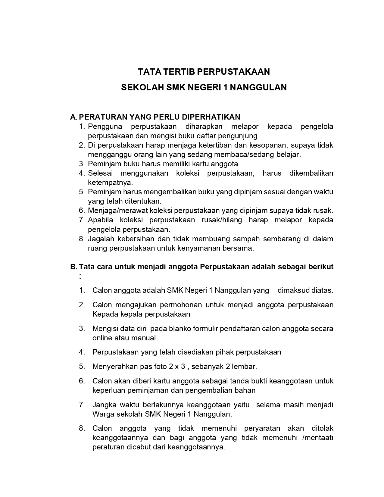 Tata Tertib Perpustakaan
